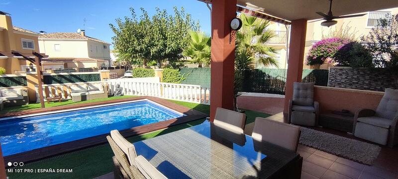 Embrace the Mediterranean Lifestyle: A Must-See Villa in AspeIf you're in search of the perfect home in the sunny south of Spain, look no further. Our beautiful villa in Aspe is a sanctuary of comfort and convenience, tailored to the needs of British, Dutch, and German expats seeking a life of leisure and luxury.Key Features:Prime Location:Nestled in the heart of Aspe, this villa is a mere 10-minute stroll away from all the essential amenities. Whether it's shopping, dining, or entertainment, everything is at your fingertips. For peace of mind, an A+E facility is just a stone's throw away, ensuring you and your loved ones are well taken care of.Living Space:With 3 bedrooms, 2 bathrooms, and a downstairs WC, there's ample space for family and guests to enjoy. Step onto terracotta tiled floors that exude Mediterranean charm and character. Stay toasty during the cooler evenings with a state-of-the-art pellet burner, controlled effortlessly via a convenient app.Outdoor Oasis:Delight in the recently refurbished 6x4m pool, a perfect spot for sun-soaked relaxation. The wrap-around garden offers captivating mountain views and a lush environment for outdoor gatherings and relaxation. Rejuvenate in the hot tub, sipping a glass of sangria as you take in the Spanish sun.Kitchen and Appliances:The high-quality kitchen is a culinary masterpiece, equipped with top-spec and built-in appliances for the chef in you.Elegance at Every Turn:An opulent marble staircase and a gallery landing that wraps around the home elevate your living experience. Enjoy year-round comfort with programmable electric heaters, ensuring you're cozy no matter the season.Energy Efficiency:This villa features 10 solar panels, generating 4.3kw of clean energy and complemented by a high-quality inverter. Additionally, you can sell surplus electricity back to the company. Benefit from remarkably low utility bills: Ibi 600€ per year, electricity 40€ per month, and water just 15€ per month.Golf Enthusiasts' Paradise:Golf lovers will appreciate the proximity to a stunning golf course, making it a golfer's dream come true.Font de Lop Golf Course is just 5 minutes away.Alenda Golf is only 10 minutes away.Parking and Accessibility:A private drive accommodates 3 cars, providing ample parking space for residents and guests alike.Live the Spanish dream in this remarkable villa, where luxury and affordability meet. Don't miss out on the opportunity to call this villa your home. Contact us today to arrange a viewing and take the first step toward your Mediterranean adventure!