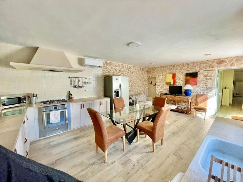 Only 8 minutes to the popular town of Sucina, this stunning recently reformed south facing detached villa. Detached rural character property with many features 164m2 built on a generous 810m2 plot.Beautiful tiled floor throughout, this villa is on one level. The entrance hall leads you to the lounge with double height beamed ceiling, feature stone wall, window seat with views of the gardens and large log burner. An alcove at the far end provides the prefect office space.There are 3 bedrooms all with full en-suite bathrooms, double height ceiling, low energy heating and air-con.The master bedroom has been recently renovated including an ensuite with a walk in shower and large fitted wardrobes.The large open plan kitchen diner has another feature stone wall, large dining area and even space for a sofa and TV area. There is a fourth bathroom.A large secluded swimming pool with sundeck and a pergola for eating “el fresco”All windows have recently been replaced with the latest triple glazed german Kommerling UPvC windows. There is additional outside storage, roof terrace and private parking.Looking for a larger plot of land then 1007m2 has just come up for sale - across the drive way!This lovely villa comes semi furnished: