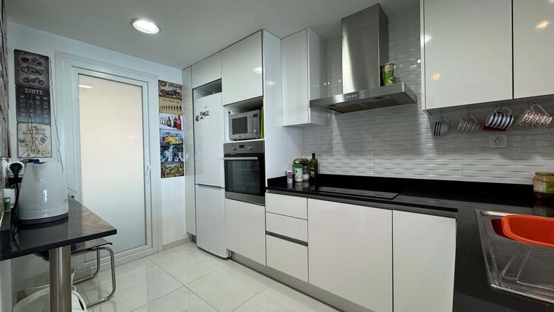 This stunning sea-front apartment is located in a resort-style property, offering breath taking views over communal pools, play areas, a gym, and the ocean. Upon entering, you are greeted by a bright open-plan living, dining, and kitchen area that flows onto a balcony, creating a seamless connection with the sea views. With air conditioning and heating throughout, the apartment is designed for comfort in all seasons. A generously sized utility room provides ample space for additional storage, adding to the practicality of this beautiful space.