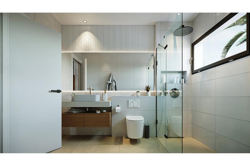 The project offers detached villas with 3 bedrooms and 2 bathrooms. All the villas are on one level, and present a spacious living area, combing the lounge, dining area and fully equipped kitchen. Thanks to the large windows in the lounge, the partially covered terrace and pool area are a natural extension of the living area. The ideal place to enjoy the Mediterranean outdoor lifestyle all year ‘round. The master bedrooms have a private bathroom and a walk-in closet.