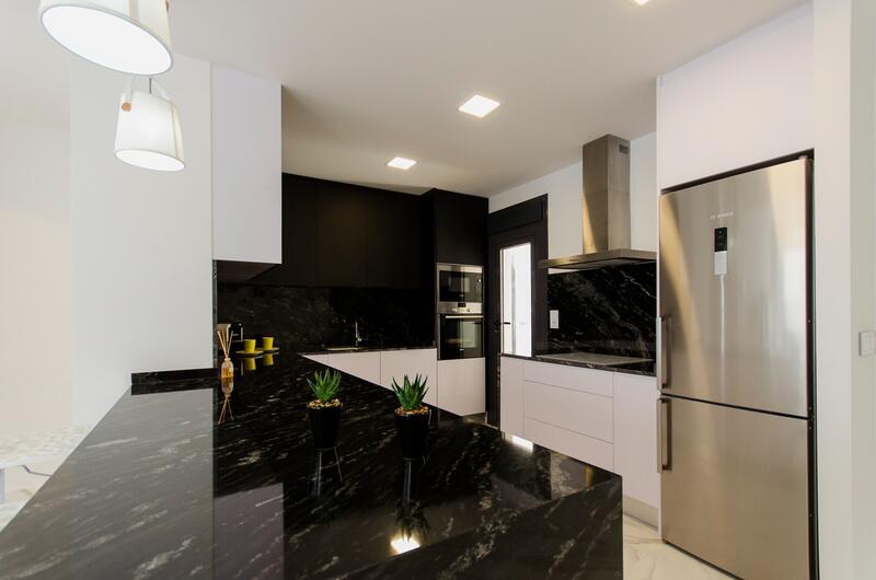 Contemporary style homes with 3 or 4 bedrooms and 3 bathrooms, available several models but all with luxury finishes. Very bright homes thanks to the open spaces and large windows that offer beautiful views of Las Salinas and the Mediterranean Sea, depending on orientation. All the villas have an open concept living-dining room, modern kitchen, porch and solarium. Some of the houses also have a finished basement while others have the option to build it. The exterior space of these homes is wide, with garden areas, private pool and parking on plot. All homes include pre-installation of air conditioning and underfloor heating in bathrooms.