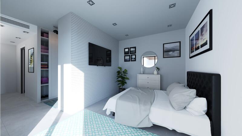 The apartments include pre-installation for ducted A/C, underfloor heating in the bathrooms, white goods, fitted wardrobes, indoor and outdoor ‘spots’ lighting, and video intercom. The solarium, on the top floor models, also includes a BBQ area. Depending on the model, there is private parking on the premises, or a private parking space in the community parking area. It is possible, for an extra price, to buy an additional parking space and/or storage units.