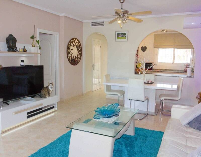 This stunning and very spacious West facing, three bedroom "Lola Super" townhouse is located in the very sought after area of Dona Pepa, Ciudad Quesada on the Costa Blanca South. The property makes up part of an attractive gated community called La Laguna which boasts ample sun-bathing space, landscaped gardens plus two wonderful swimming pools. Ideally situated within easy walking distance to a good choice of local amenities such as bars, restaurants, supermarkets, a pharmacy, a medical centre along with the bustling Quesada high street with its lovely new shopping boulevards and a wealth of other amenities and services. Also nearby you will find the beautiful La Marquesa golf course plus the popular family Aqua Park.This delightful property has been maintained to a very high standard by the current owners and offers; a wonderful covered front sun terrace which overlooks the communal garden areas, an inviting, light and airy lounge/diner, a well appointed fully fitted kitchen with direct access to the rear East facing terrace, an ideal place to have your morning coffee plus there is also a lovely shower room on this level.Upstairs you will find two double size bedrooms both with fitted wardrobes and both boasting their own wonderful private sun terraces, one of which is a very good size with room for sun loungers and a table and chairs whilst offering some lovely views of the communal pools and gardens along with some lake views, an idyllic place to relax. On this level you will also find a very spacious luxurious family bathroom with a corner bath feature.Downstairs on the lower level you will find a fabulous master bedroom with fitted wardrobes and a spacious en-suite bathroom. There is also the added bonus of patio doors leading out to a rear terrace with artificial grass & some lovely Spanish tiling, creating a nice chillout zone. There is also a further bathroom, a second kitchen area, a large storage and utility area plus access to very good size garage which is currently being used as a storeroom.Outside there is also a large tiled front garden with off-road parking and of course entry to the garage if required.The property further benefits from air con and ceiling fans.This stylish family size home would be ideal as either a permanent or holiday home in the sun and needs to be viewed to fully appreciate the quality and space on offer.Ciudad Quesada is located in Rojales and is a very prestigious and sought after urbanisation on the Costa Blanca South with a mixture of nationalities such as Scandinavian, Dutch, German, Spanish and English. It has its own bustling high street with many good restaurants and bars, shops, petrol station, medical centres, farmacias, four star luxury hotel, Water park and of course the famous La Marquesa golf course. Situated just a 10 minute drive from the award winning blue flag beaches of Guardamar and La Mata as well as the city of Torrevieja it is only a 35 minute journey to Alicante airport