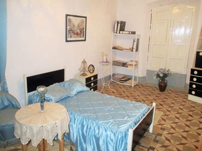 A large 250 sq m village house in a charming square in the market town of La Codosera, close to the Portuguese border. The house, which has a new roof, is full of character including old stone floors and half tiled walls and is perfectly habitable now although would benefit from some modernisation. Most of the accommodation is at first floor level and consists of a hallway, 8 further rooms plus a kitchen/diner and a bathroom. In addition there is a front balcony running the width of the house and a large covered terrace again running the full width of the house at the rear. The price includes all furniture, some of which are antiques, and represents excellent value for money for such a large property.