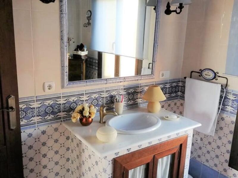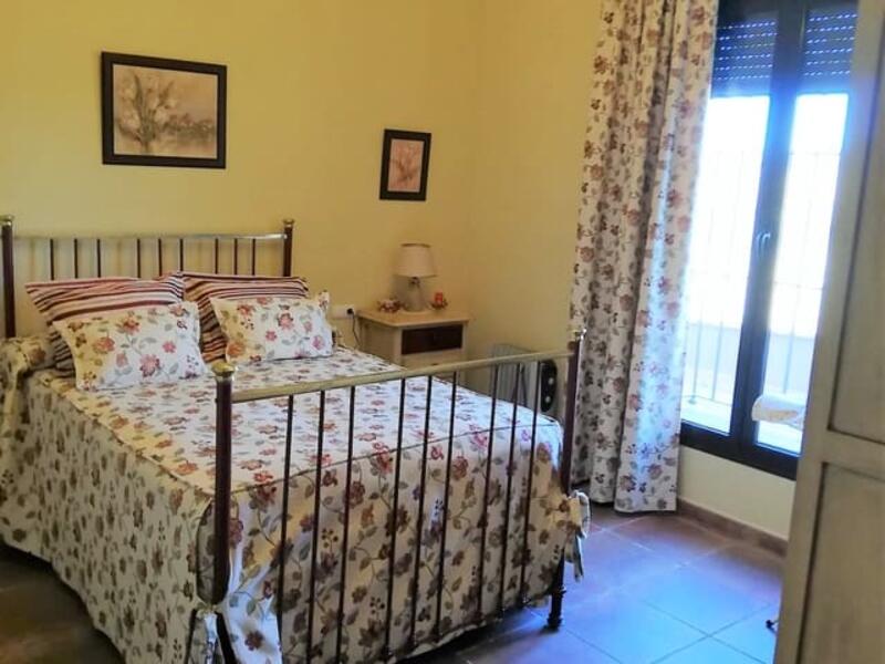 A 208m country house sitting in 16,500 sq m (4 acres) of land with a beautiful living room with a large fireplace, three bedrooms with fitted wardrobes, a hallway, a full bathroom and a full kitchen with an American bar to the living room. It has a garage with a toilet and a storage room that is used as a laundry room. All the materials used are of the highest quality, the wooden doors and the aluminum exterior doors with double glazing. Outside there is veranda to enjoy the landscape and the wonderful sunsets as well as a swimming pool surrounded by grass. Access to the finca is through a private road, mains electricity is connected and water is provided by two very productive wells. The entire perimeter of the house is closed with a fence and a main entrance gate.