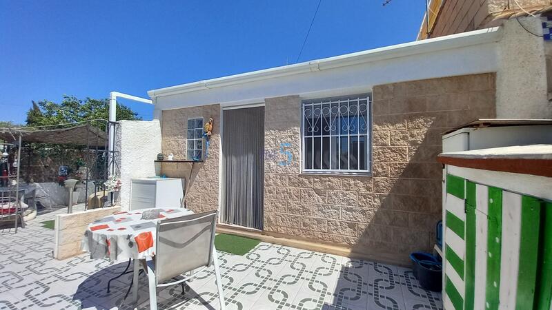 Inside, you'll find a spacious living area equipped with air conditioning and a ceiling fan, ensuring comfort throughout the year. The separate kitchenette is practical for daily use. Both double bedrooms have ceiling fans, and one of the bedrooms features a former utility area now repurposed as storage space. The bungalow also has a modern shower room and is sold fully furnished, making it ready for immediate occupancy or rental.