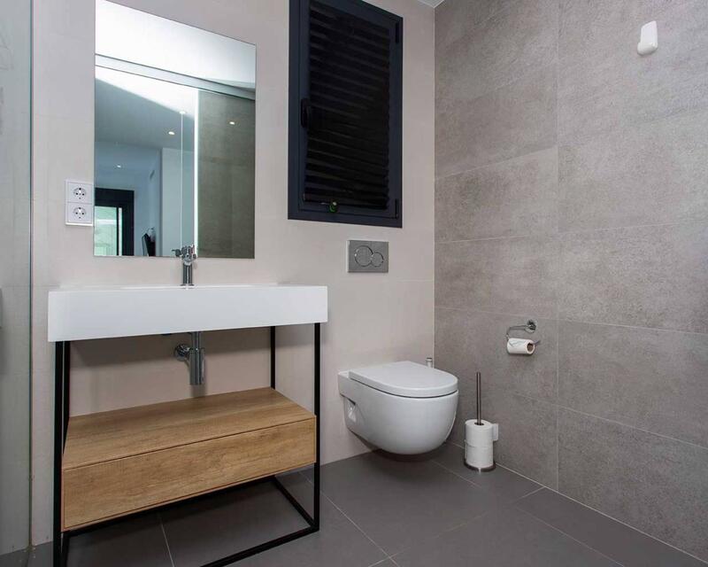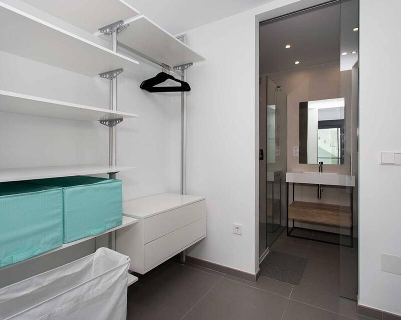 Ground Floor:Spacious open-plan living area and kitchen with modern finishes.Guest WC.Double bedroom with a walk-in wardrobe and en-suite shower room.Direct access to the private terrace and infinity pool.Upper Level:Two double bedrooms, one with a fitted wardrobe and the other with a walk-in wardrobe and private terrace.Both bedrooms feature en-suite shower rooms.