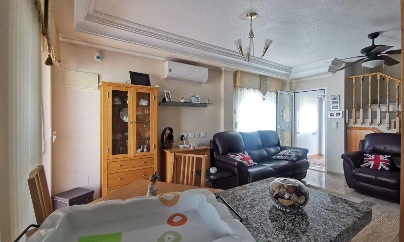 A very beautiful chalet and so sunny with beautiful views and with a park and green area in front. Has a community pool .Chalet has 3 bedrooms, 2 bathrooms, closets, wardrobe, and with the work-office area. It has a great practical terrace , there is also room to build your own pool if you feel like it, sun on the terrace all day because it is East South. Entering the house you find a nice living room with fireplace, kitchen, balcony. Then on the ground floor a master bedroom with bathroom and shower, clothes closet and another closet. On the second floor there are two large bedrooms and a balcony, and an area with a work-office window. Above all you have a solarium with spectacular views. The house is only less than a km to the largest and best golf courses, so close to the best beaches in Orihuela Costa such as Cabo Roig, Campoamor, La Zenia beach, Playa Flamenca. Close to all shops, shopping centers and only 3 km to the famous "La Zenia" shopping center. The impeccable and very well organized house is the house of your dream.
