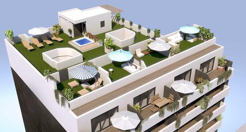NEW BUILD APARTMENTS IN TORREVIEJA New Build apartments with community solarium and jacuzy on the roof and commercial premises in Torrevieja close to the beach. The building is made up of 3 bedrooms, 2 bathrooms apartments, with only 4 homes per floor, designed both for year-round residence and for those looking to enjoy their vacations without giving up anything. Within a radius of 500 meters you have all the amenities: you may need: restaurants, pharmacies, health center, town hall, post office, all kinds of shops, and of course the promenade and the beach. The homes have a contemporary design and a kitchen concept integrated into the living room. The master bedroom has an en-suite bathroom, and the price of the houses includes a garage space in the basement. In addition, there is a storage room an options at an extra cost. All the apartments have a terrace. On the roof of the building there is a pleasant communal area with a jacuzzi, showers and a relaxation area. Torrevieja is a Spanish town in the province of Alicante, on the Costa Blanca. It is known for its typically Mediterranean climate and coastline. It has boardwalks with resorts along its sandy beaches. The small Museum of the Sea and Salt houses exhibitions on the fishing and salt history of the city. In the interior, the Lagunas de La Mata-Torrevieja Natural Park has trails and two salty lagoons, one pink and the other green. Alicante airport located 40 minutes away and Murcia airport about 1 hour away.
