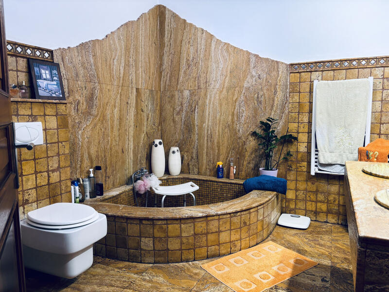 Huset är helt friskt, det innehåller material av hög kvalitet som A/C, golvvärme, varmvattenberedare, poolmotor, utomhuskök i sten som alla är perfekt underhållna.