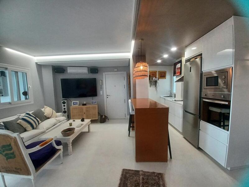 This beautiful apartment in Hacienda Riquelme Golf Resort has a sunny terrace overlooking some spectacular views of golf, lake and swimming pool. The apartment has been remodeled to a high standard with eclectic finish featuring polished concrete floors throughout and high quality finish on the kitchen and the bathroom. The apartment enters into a bright living room with lounge area and dining area featuring an open plan kitchen with cooker/hob/ extractor, dishwasher , fridge freezer and washing machine included in the sale. The living room leads to a covered terrace in SE position it has sunshine most of the day; the terrace has extensive storage built in and is ideal place to enjoy the sunshine or al fresco dining whilst enjoying the views. The living room leads to a hallway with bathroom upgraded to a good level, it is spacious and decorated with quality wallpaper, it has a walk in shower, vanity unit and wc. The hallway leads to 2 double bedrooms, the first with a double bed, fitted wardrobes and a juliet balcony overlooking beautiful mountain views to the West to enjoy the sunset. The second bedroom is similar size, currently furnished with twin beds, fitted wardrobe and also with juliet balcony. This apartment comes with underground parking space, it is sold unfurnished with the electrodomestics, airconditioning and fittings included. Set in the beautiful golf resort of Hacienda Riquelme, this apartment comes with WIFI, satellite TV, 24 hour security, sport facilities, 19 pools, building maintenance and administration just a short walk to Restaurant, supermarket and golf club. Just 20 minutes from the airport and 20 minutes to the coast, this is an ideal place to enjoy peace and quiet in a beautiful green oasis.