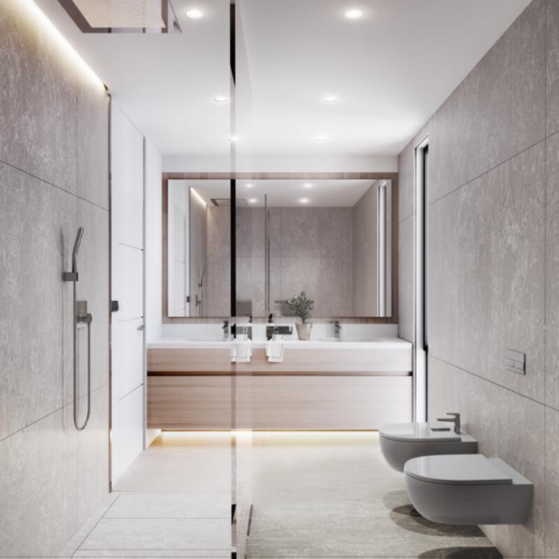 Each villa has 4 bedrooms and 6 bathrooms, as well as large terraces on each floor, both covered and uncovered, perfect for barbecue, gatherings with friends or just sunbathing to your heart’s content.