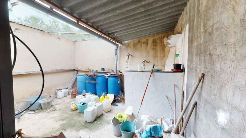 The house is divided into a living room, kitchen with a large fireplace, with two bedrooms. A patio with a toilet.