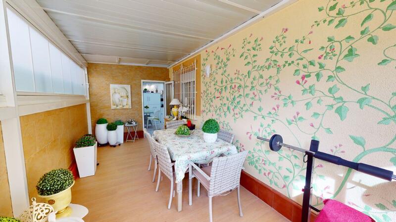 Excellent, quad villa with a private pool, in the well sought-after town of Torre de La Horadada. The ground floor features a large, open-plan living-dining area, modern, fully fitted kitchen, a family bathroom, utility room/pantry, another dining area which is also used for storage & a large winter garden to the side of the property that the current owners use as another living area. The 1st floor presents 2 bedrooms both with built-in wardrobes, one with access to a private balcony & 1 large family bathroom. The 2nd floor offers the master bedroom with an en-suite bathroom, built-in wardrobes & access to a 2nd private balcony providing beautiful views of the surrounding areas. A large exterior offering a good-sized, private swimming pool, a shower, outside storage, the winter garden & a lovely, front terrace.