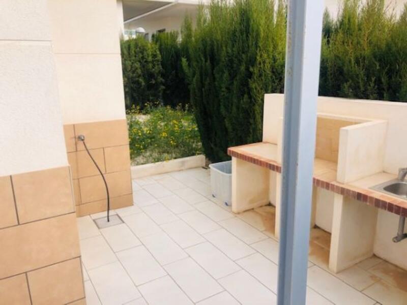 This tranquil ground floor apartment is located in the district of Dona Pepa in Ciudad Quesada. The apartment has 3 bedrooms with fitted wardrobes, 2 bathrooms, a modern kitchenette and a living / dining area. The property has its own garage with an adjoining fitness area. The community of owners has a swimming pool with seating. The property also benefits from an easy-care outdoor area with a summer kitchen. Please contact us for further information on this offer.