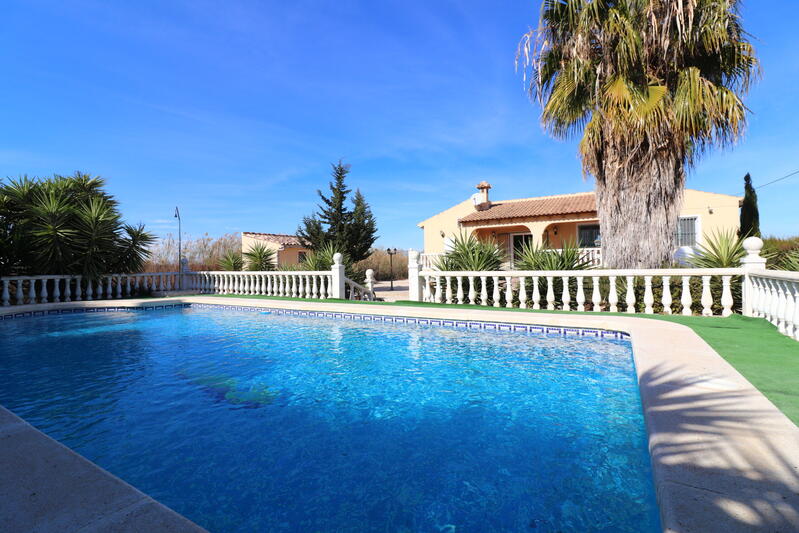 This East Facing, Three Bedroom, Country Villa in the Algorfa area (although postcode is Almoradi), surrounded by open countryside, yet only 5 minutes by car to Quesada, Benijofar, where you will find every amenity you could need, including Burger King, variety of shops, supermarkets, dining experiences, pharmacy and more. There are 3 popular golf courses within a 10 minute radius and the nearest beach just 20 minutes away. This fantastic opportunity occupies a 4708m2 plot, with the villa being all on one level and needing to be brought up to date, comprising of: a spacious covered entrance terrace, leading into the living area with corner brick fireplace; separate fitted kitchen; three double bedrooms; and family shower room. The plot surrounding the villa has been concreted, so great access for cars, etc, plus a garage, BBQ area and what would have been in its day a feature pool area. A total opportunity to put your stamp on this property and make it a home once again.