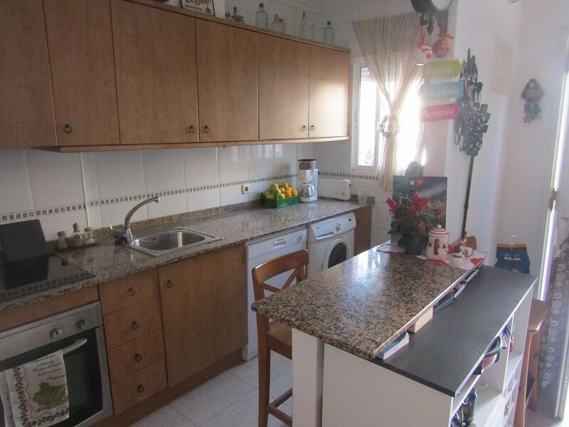 This is an excellent opportunity to purchase a property with a garden and pool views. The property is located in a small gated community. The front of the property overlooks the large communal pool. There is a small tiled garden and an elevated front terrace. The main door opens up into the lounge with open fully equipped kitchen. To the back there are 2 double bedrooms and a bathroom. One bedroom has access into an enclosed back tiled terrace In the lounge there are stairs going up into the master bedroom with en suite shower room. There is acces onto a large outside terrace with extended views over the communal pool and gardens This property is close to a public walking route and not far from the Algorfa Hotel and La Finca Golf commercial centre with many bars and restaurants The golf course of la Finca Golf and the Spa Hotel are 5 minutes drive away Distance to: Bars and restaurants - 5 minutes Algorfa - 5 minutes Beach - 20 minutes Airport - 40 minutes Golf - 5 minutes