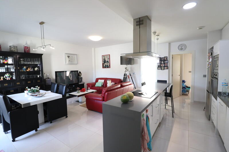 This Modern, Two Bedroom Bungalow in Los Palacios is situated in a great location, between Formentera del Segura, Rojales and Benijofar, overlooking a municipal park and garden. Located in a bustling Spanish town, directly between two main brand supermarkets and within a few minutes walk of an abundance of amenities facilities, also just an 10 minute drive to the truly desirable blue flag and award winning beaches of Guardamar del Segura. This desirable property, built in 2019, has been well designed, comprising of an open fully fitted kitchen, with a feature breakfast bar; lounge/dining room with direct access out to the front terrace and private swimming pool area, with ample space for dining outdoors + an off road parking space; two double bedrooms, the master with en suite shower room; and a family shower room. This particular model has external stairs, from the inner courtyard utility area, to the private roof top solarium, a great space for entertaining, BBQ’s and sunbathing.. Extras with this property include air conditioning throughout, electric blinds, retractable sun awning on the solarium, pool, parking, utility room and solar panel. Another added bonus is that this property is not part of a community!