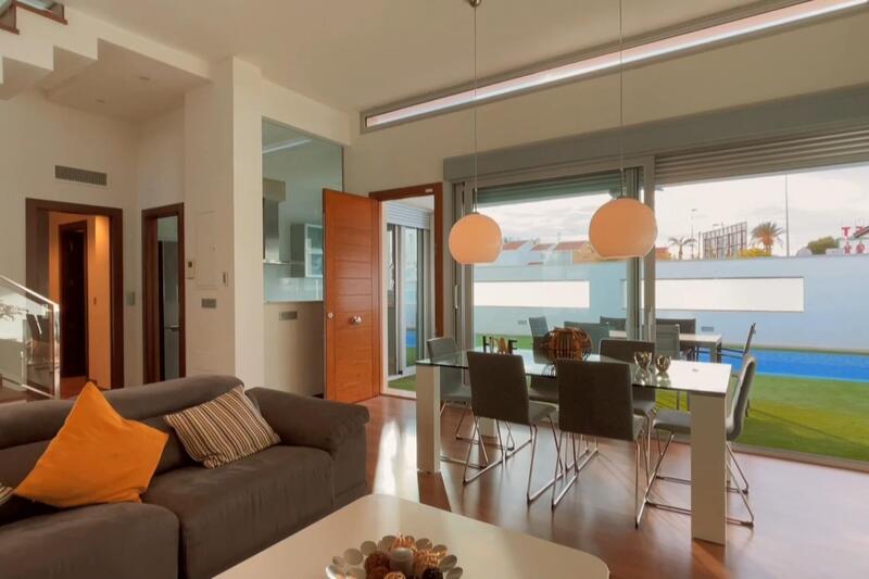 Detached Villa with some 139 m2 of living area, being sold fully furnished and equipped on a plot of 296m2.  This beautiful property has three bedrooms and two modern bathrooms, spacious lounge and dining areas, independent modern kitchen, with nice sea views and a private pool.  A parking area inside the plot, also there is the possibility of a fourth bedroom on the first floor.  The property is south west facing, its large roof terrace will allow you to enjoy all of the sun hours of the day.  Located only one kilometer to the impressive Mil Palmeras beach, the property enjoys services, green areas and several golf courses close by.