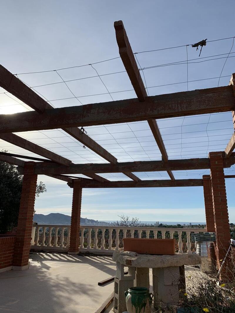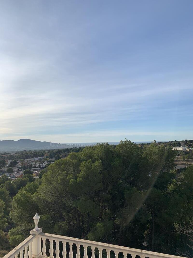 The views stretch from Benidorm to Altea. It is a house for the whole family, it has 3 floors, consists of 7 bedrooms and 5 bathrooms. This is a villa that has been built with a lot of love and offers a lot of privacy. Of land it has 6400 m2, useful meters 651 m2, parking for a multitude of cars, since it has a large outdoor area at the entrance. On the ground floor you have a huge wine cellar that connects to the common pool and BBQ area. This floor also consists of a bedroom with an en-suite bathroom overlooking the pool and a room that can be used for storage or even converted into an extra room. On the middle floor is the entire common area. It has an interior courtyard that offers very good ventilation in summer and provides the house with light. There is a kitchen with dining area, a separate dining room, 3 bedrooms, 1 of them with en-suite bathroom, office, living roomUpstairs there are 2 extra bedrooms, with undercover storage
