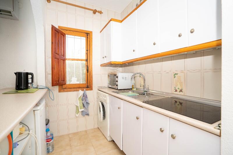 GROUND FLOOR BUNGALOW WITH PRIVATE GARDEN FOR SALE IN LAGO JARDIN, LOS BALCONES, TORREVIEJA.We offer for sale a cozy bungalow located on the ground floor in the residential complex Lago Jardin, Los Balcones. The apartment has 2 bedrooms with built-in wardrobes, bathroom with a walk-in shower, a spacious living-dining room, open type fully equipped kitchen with breakfast bar, utility room and wonderful private garden, where you can enjoy the mild Mediterranean climate all over the year. The apartment is in a very good condition and full of sunlight.The complex has a communal swimming pool with green areas, and all the necessary infrastructure - shops, supermarkets, pharmacies, bars, restaurants - is within walking distance.One of the main attractions of the Costa Blanca - clean and beautiful beaches, which year after year are awarded by the "Blue Flag" - just a few kilometers from the residential complex. This makes the area perfect for both short-term stays and permanent residence.The nearest airport is Alicante - 45 km.