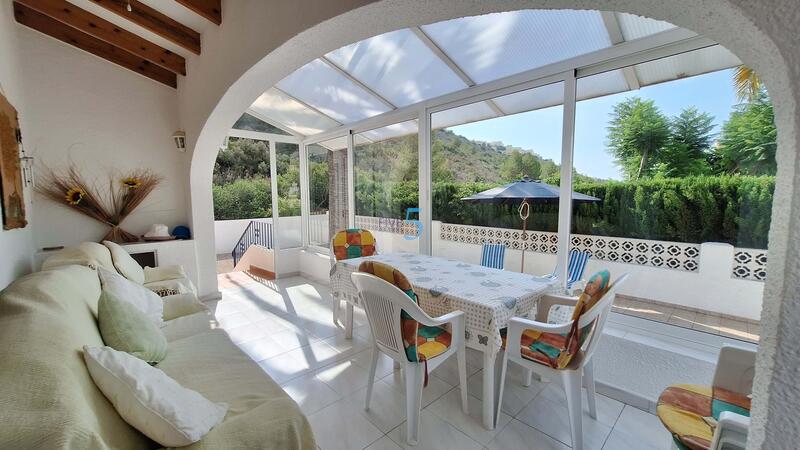 Situated on a generously sized, level plot in the sought-after location of Benitachell, this detached villa offers a prime living experience close to both Moraira and the beach at El Portet. The property features an enclosed naya, ideal for enjoying outdoor views in comfort, which leads into a spacious open-plan living and dining area. The open-plan kitchen is well-equipped with modern appliances, including a built-in oven, hob, extractor fan, fridge freezer, and dishwasher, making it both functional and stylish.