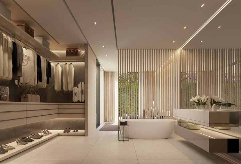 Stepping into Casa Tesalia you are welcomed by a modern and sleek living space with a nice design kitchen in an open plan to the dining and living room. Through the large floor to ceiling glass doors, you'll get an amazing view over the golf course of Los Naranjos. Furthermore, on this level there's 4 bedrooms, all en-suite and with its own terrace. The master bedroom with its almost 40 m2 includes a walk-in closet and designer bathroom in an open plan to create that luxurious suite feeling.