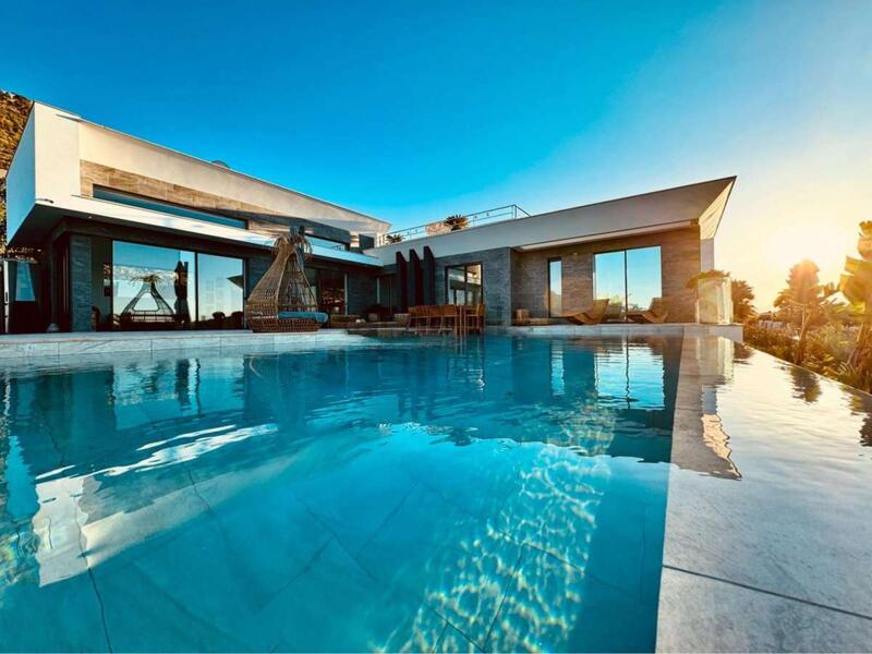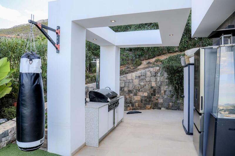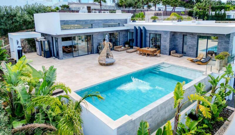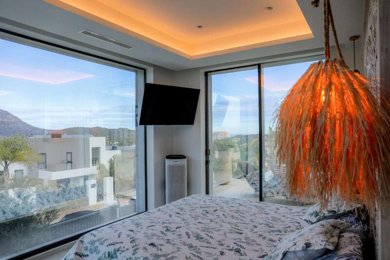 Fantastic newly built modern villa with sea views in Jávea. Located in a recently created urbanization completely consolidated next to the town of Benitachell with all its services and a short distance from the urban center of Javea, its beaches, Golf Club and International schools. Built with very high qualities and an impressive contemporary design, with impressive views of the Montgó mountain and the Mediterranean Sea. The villa is distributed over 3 floors; On the ground floor and access to the property there is a large bedroom with an en-suite bathroom, a large room currently used as an office but could be converted into a leisure area or gym and a spacious garage. On the first and main floor there is a bright living room with very high ceilings, with fantastic views and access to the pool area, terraces and barbecue area. In addition, a luxurious fully equipped kitchen with island, pantry and access to laundry area, 3 bedrooms. and 2 bathrooms all with sea views. On the upper level with exterior access by stairs, there is a large solarium with panoramic views. Completely fenced plot, with space for parking several vehicles. We highlight that the villa has underfloor heating, Panasonic aerothermal, hot and cold air conditioning equipped with the independent Airzone system in each room, double glazed aluminum windows, alarm system, home automation for exterior lighting, Porcelanosa brand bathrooms, Miele and Bosch appliances, fiber optics, automatic irrigation in the garden and automatic filtration and pH system in the pool.