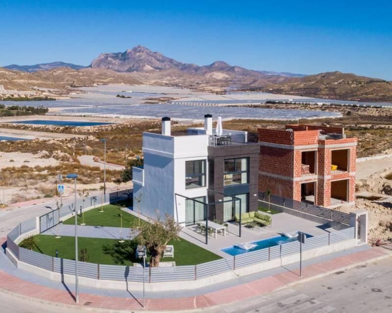 Development of independent new construction villas, with private pool and modern finishes. The houses consist of 2 floors and you also have access to the solarium with great views of the sea. On large plots of around 550 m2. Its elevated location offers wonderful open views of the mountains, the city of Alicante and the sea. Strategically located 1 km from the Bonalba golf course, 3.5 km from the beaches of San Juan and Muchavista, 9 km from the city of Alicante and 20 km from the Alicante international airport. Enjoy an average annual temperature of 20ºC and 300 days of sunshine a year in an environment with rich gastronomy and a wide range of leisure activities.