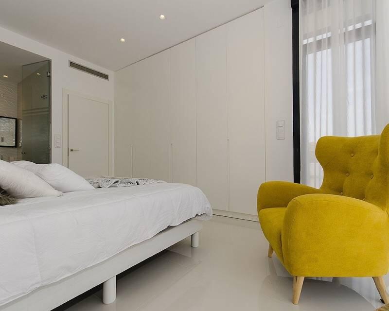 NEW BUILD VILLA IN ORIHUELA COSTA (CAMPOAMOR) Do you want to enjoy an exclusive vacation near the sea? Impossible not to fall for this ultra-modern villa in Orihuela Costa with 4 bedrooms, 2 bathrooms, private pool, garden and luxury extras, according to personal preferences. Its delicate infrastructure integrates with nature providing a quiet and isolated environment. Built with the highest quality materials, this elegant property is surrounded by abundant vegetation and a few meters from the cleanest beaches in Campoamor: Playa de la Glea, Aguamarina and Cabo Roig. It is a pleasure to have these three beautiful beaches that have been awarded with the Blue Flag within reach. Whenever you need a moment of reflection, you can go down to touch its crystal clear waters or lie down on its soft sand to read a book while listening to the placid sound of the sea. In the surroundings you will find all the essential services to live all year round: supermarkets, pharmacies, cafes, restaurants, shopping centers ... And if you are also enthusiastic about golf, less than 10 minutes away you can choose between three privileged golf courses of international recognition where put your aim to the test: Las Colinas Golf, Villamartín or Las Ramblas. The promotion includes several models of homes with 2,3,4 and up to 5 bedrooms. This particular villa consists of 4 double bedrooms, 2 bathrooms, a fully equipped American kitchen, an open living-dining room with great lighting, access to the garden and the beautiful pool. In addition, the price includes: Underfloor heating and mirror in bathrooms Indoor and outdoor lights Built-in wardrobes Security door Pre-installation of air conditioning Top brand appliances The house follows the trend of open concept design, enhancing spacious spaces and offering a greater sense of comfort and well-being in its interiors.