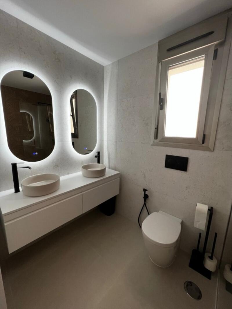 luxury villa in San Miguel De Salinas. This luxurious home boasts no less than 4 bedrooms and 3 bathrooms. The property is south-east facing and enjoys plenty of natural light thanks to the open spaces and large windows.On the ground floor, the villa has a spacious open-plan living and dining area with modern kitchen fully equipped with high-quality materials and appliances, as well as a quooker. There are 3 bedrooms and one en -suite with an en-suite bathroom. The second bathroom is on the same floor with the same high-quality finishes. Underfloor heating is provided in the living room, kitchen and all bathrooms. The villa has all kinds of extras: an alarm system, cameras, air conditioning, fly screens and electric shutters.Downstairs there is one bedroom with en -suite bathroom, which also offers the possibility to make 3 more bedrooms. These rooms are now used as a gym with full professional equipment. A laundry with worktop, a large storage room and a desk.The garden with swimming pool has large terraces where you can place garden furniture for outdoor dining and a barbecue area. The large solarium has a full outdoor kitchen with cold and hot water and a bar where you can enjoy the fantastic views with your friends and family. The villa is equipped with new solar panels, making it an eco-friendly and sustainable option for buyers interested in renewable energy.In short, this modern property in one of the Costa Blanca's most exclusive areas is a unique opportunity not to be missed. It offers a great quality of life and the opportunity to enjoy the best amenities, climate and natural beauty of this part of Spain.Interested buyers should act quickly to ensure they don't miss this opportunity.