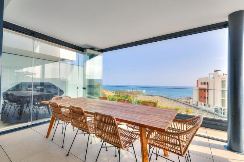 The combined living room/kitchen and all bedrooms open onto a large terrace. Part of the terrace is glazed, so you get plenty of living space and you can enjoy the sea view sitting on the terrace even on a cloudy day.